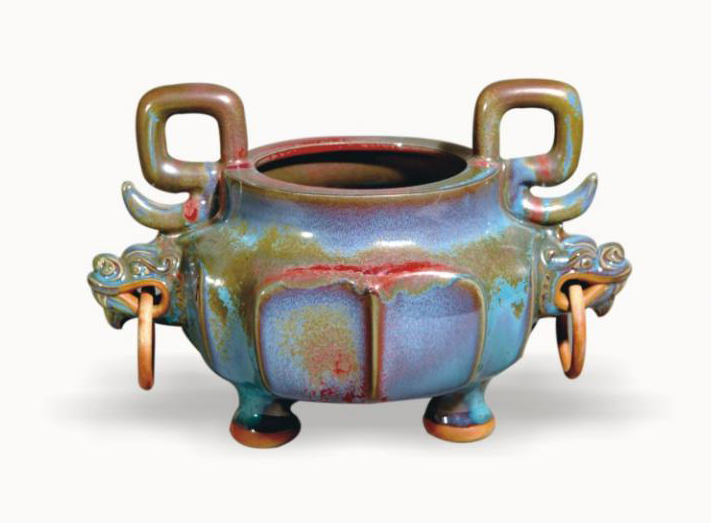 衔双环,凝重大气平添几分灵动。作品十分巧妙地将龟蛇合体融为一炉,整体造型古朴端庄,文饰典雅精致、釉色五彩渗化、华丽唯美。