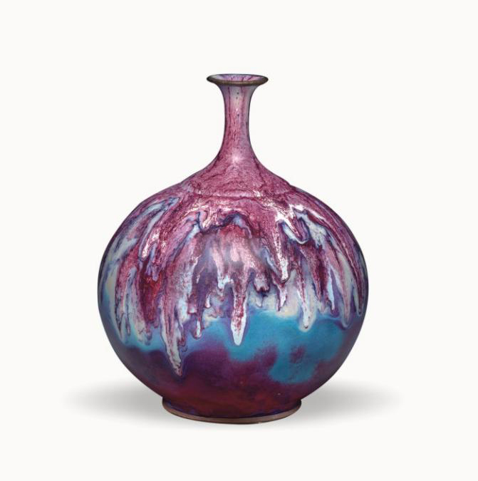 术,创造出绚丽缤纷,千变万化的神韵,在这五彩渗化,寓变万千的登高瓶面前真可谓